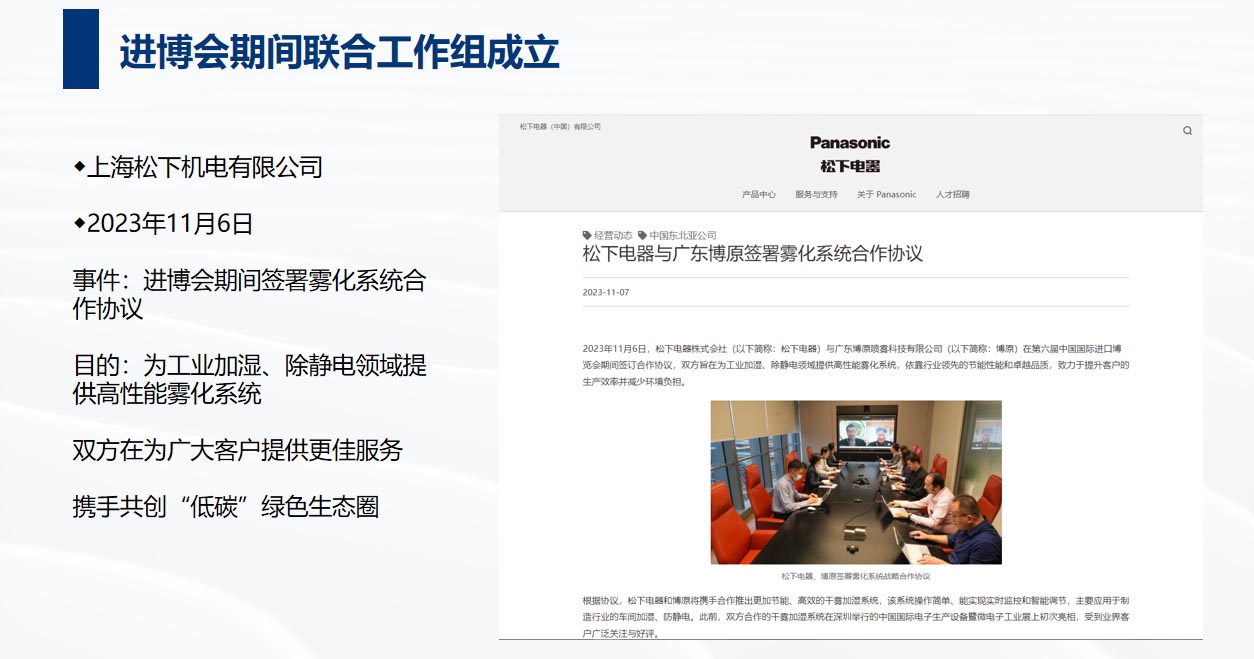 雙方于2023年簽訂MOU戰略合作協議,目前水霧項目穩定有序的開展,兩個SMT車間智能加濕項目完美落地,噴霧控制系統已實現國產化,后續雙方會持續優化產品及項目流程,為用戶提供更優質的服務。