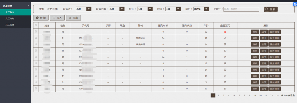 寺院管理軟件的義工管理功能包含義工列表,義工分組,義工統(tǒng)計(jì),每個(gè)功能可以幫助寺院管理人員快速登記、查找和分析相關(guān)義工人員,工作安排可以通過(guò)微信信息直接促達(dá),省時(shí)省力管理義工人員。